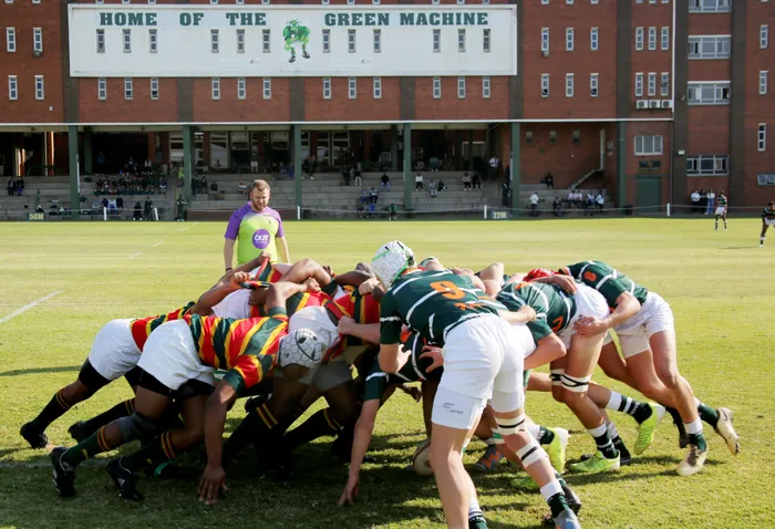 Glenwood High School up against Hoerskool Rustenburg in a rugby match at Glenwood High School on Saturday. Tumi Pakkies/ Independent Newspapers.