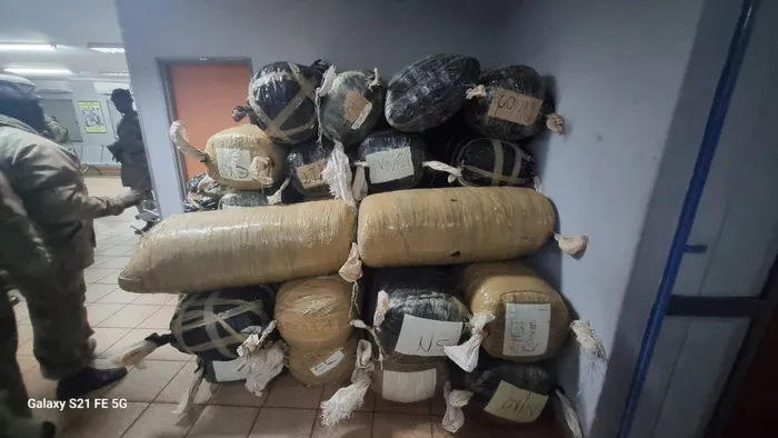 8 SA Infantry Battalion discovered 28 bags of abandoned dagga with an estimated street value of R5 880 000.00. Picture: 8 SA Infantry Battalion