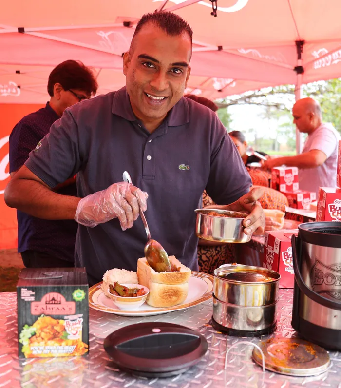 Digging in is Fahim Khan from Zahraa's Unique Foods during the judging at the Coca-Cola Beverages South Africa (CCBSA) Bunny Chow Barometer Challenge