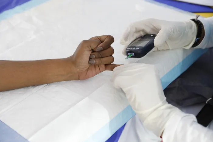 A community member being attended to by a medic on duty at the Sunfree's wellness clinic held in phoenix