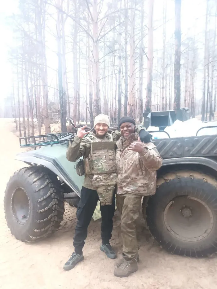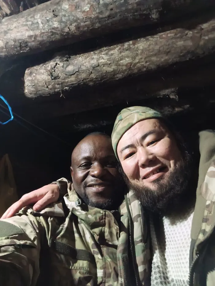 Blessing Khoza, who is allegedly fighting on the frontlines of the Russia/Ukraine war is seen with an unknown individual
