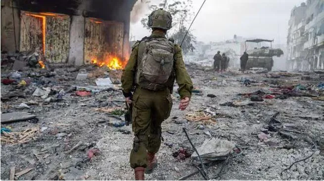 An Israeli solder walks though the wasteland that they have reduced Palestine to. Are we on the brink of even great conflict in 2026?