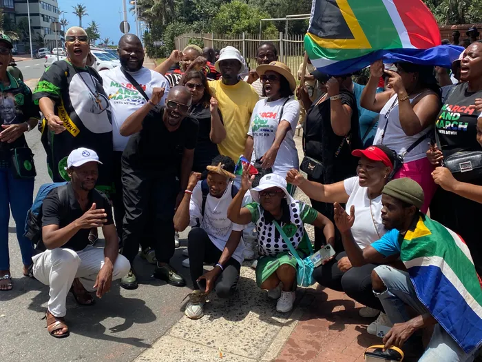 March and March and Mkhonto WeSizwe Party supporters outside Addington Primary School on Thursday.