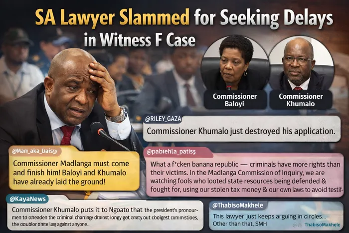 The lawyer for Witness F, who was attached to the office of a top SAPS official, received backlash on X as he struggled to explain why his client wanted another postponement.