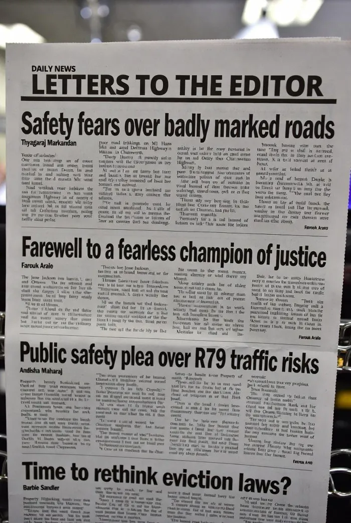 The current situation has caused frustration and concern among residents, who feel their safety needs have not been adequately prioritised. We urge the KwaZulu-Natal Department of Transport and local representatives to engage transparently with the community and to provide practical, evidence-based solutions.