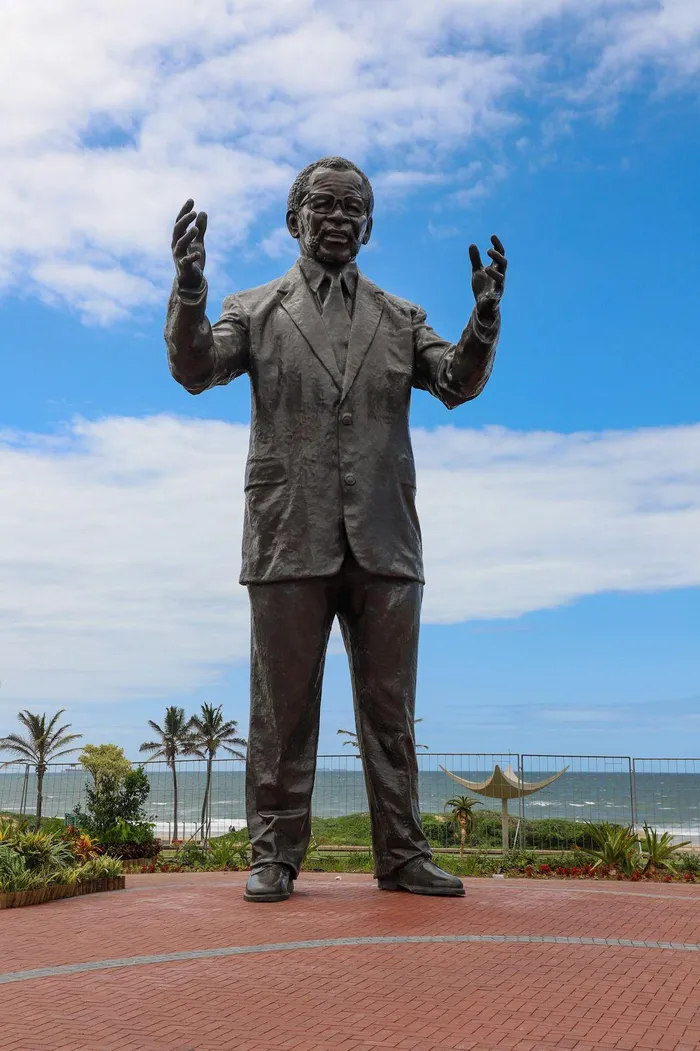 The unveiling, presided over by President Cyril Ramaphosa, featured the installation of two 10-metre-tall statues. Tambo’s statue stands on Durban’s popular beachfront, while the figure of Mandela is positioned outside the Moses Mabhida Stadium.
