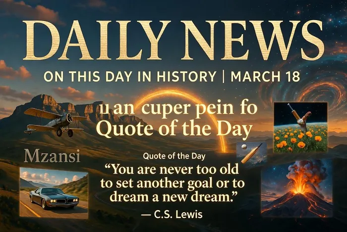 1910 Thomas Thornton becomes the first air passenger in South Africa when he pays Albert Kimmerling £100 for a short flight from Sydenham Hill in Johannesburg. On the same day, Rand reporter Julia Stansfield becomes the first woman passenger when Kimmerling takes her on a flight over the city.