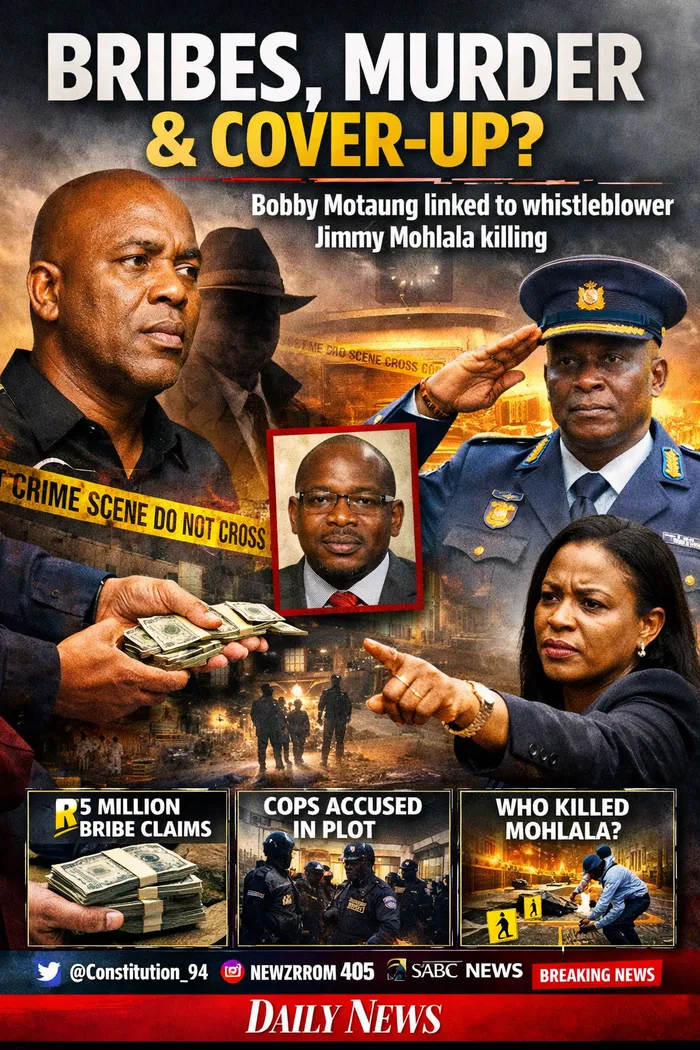 @Newzroom405 Suspended Mpumalanga SAPS commissioner Semakaleng Manamela says Major-General Moukangwe confessed that he and Police Commissioner Fannie Masemola were paid R5 million by businessman Bobby Motaung “to ensure Manamela does not return to work. If she does, the case dockets will be reopened, as they were allegedly responsible for Jimmy Mohlala’s death.”