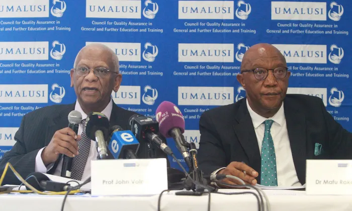 Professor John D Volmink and CEO, Dr Mafu Rakometsi. Chairperson of the Umalusi council , Professor John D Volmink and CEO, Dr Mafu Rakometsi at a media briefing where it was announced that the matric results have been approved for release. Picture: Jacques Naude/African News Agency(ANA)