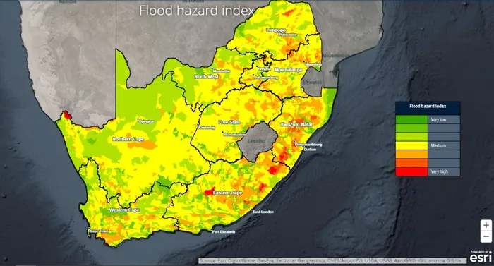 Extremely high Flood Hazard Index values are found in areas in Limpopo, KwaZulu-Natal, Eastern Cape and Lesotho. PICTURE: CSIR