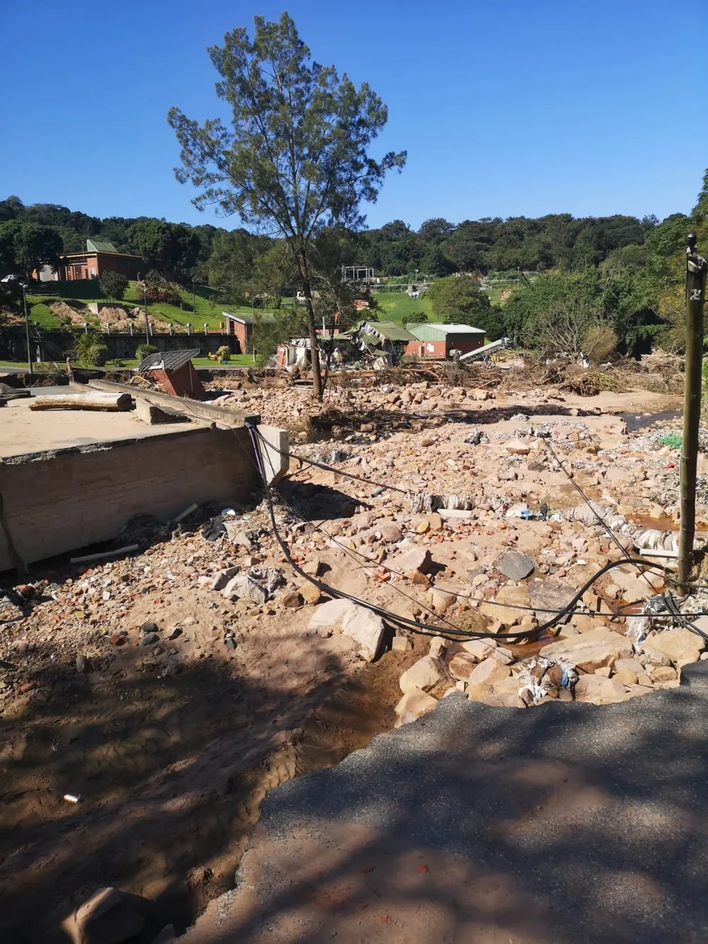 “Access was only recently gained when a steep trail was cut through the bush to the plant. The sight that greeted the delegation was one of utter devastation. The roads servicing the plant have been completely destroyed in four locations, and the entire lower portion of the waterworks has been washed away by the Umbilo River,” she said.