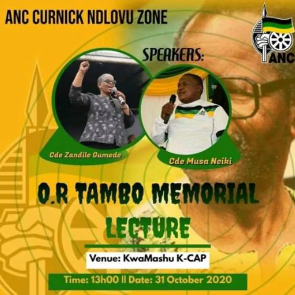 Durban– Former eThekwini mayor and ANC MPL in the KZN legislature Zandile Gumede has distanced herself from an OR Tambo memorial lecture which is punting her as a guest speaker.