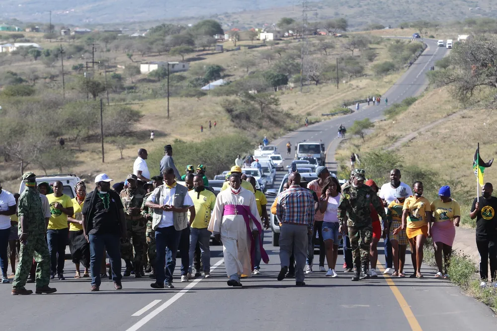A few kilometres before reaching the home of the Zumas, the convoy was joined by jubilant community members.
