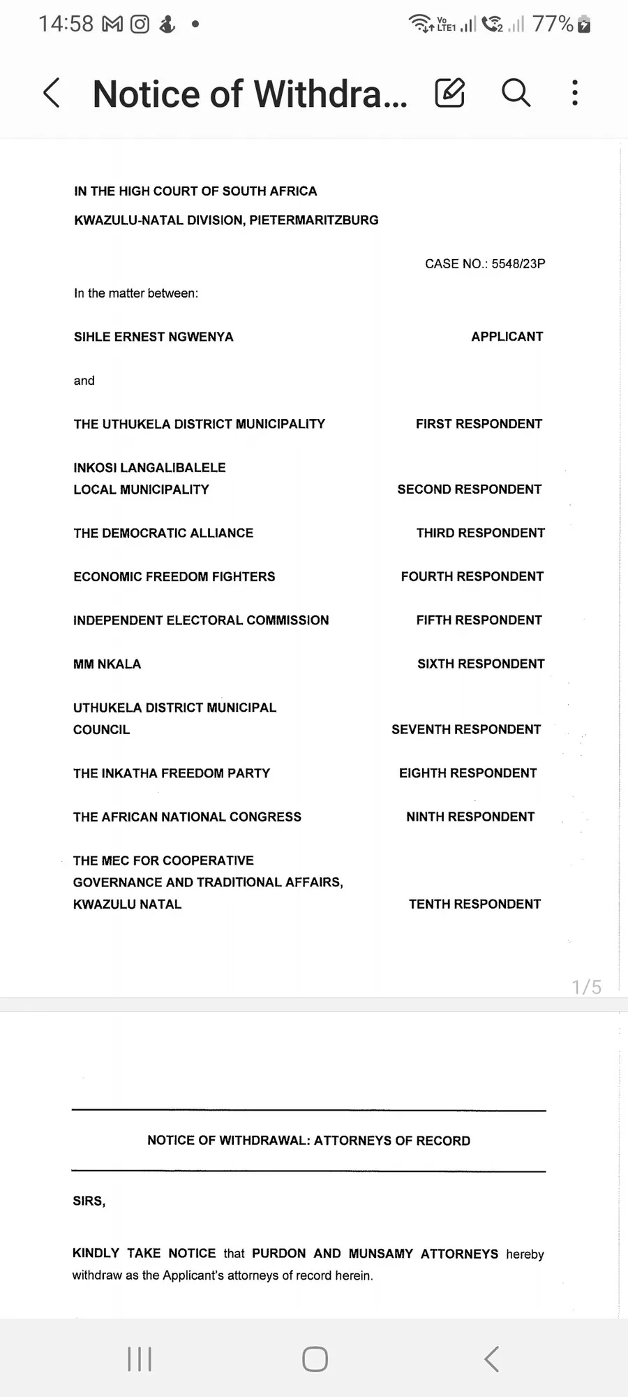 This comes after the attorneys of record for councillor Sihle Ngwenya abruptly withdrew their services.