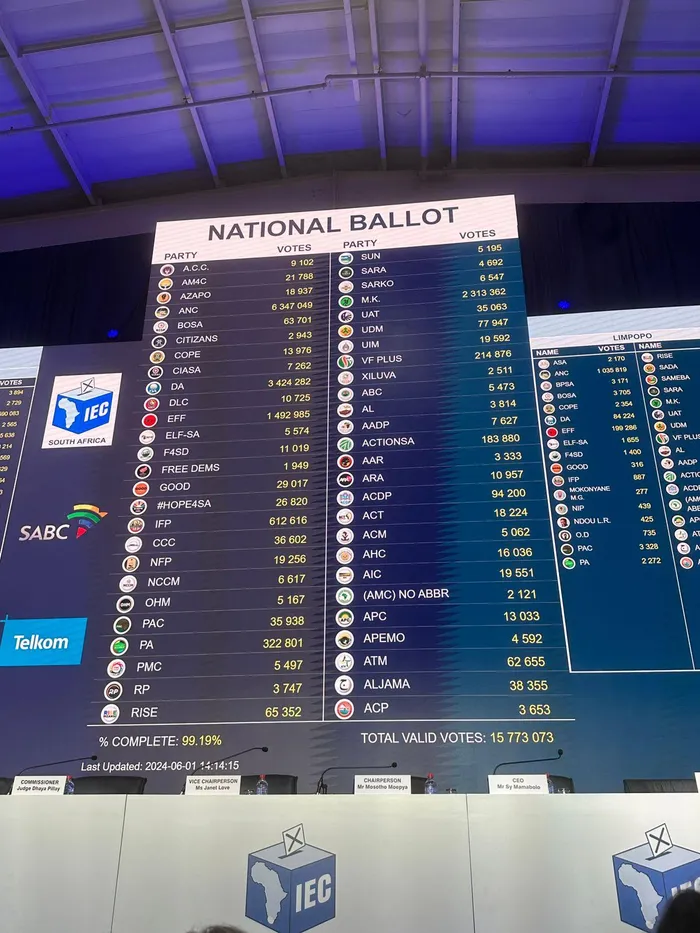 After around three days of counting the IEC has said that 99.19% of voting districts have been counted and updated.