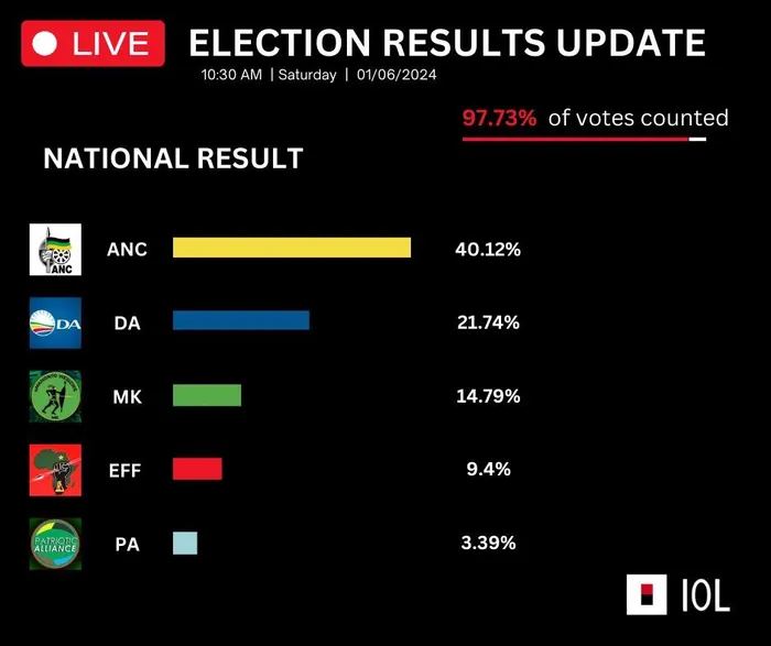 His comments come amid hints of behind-the-scenes talks of an ANC/DA/IFP coalition in KZN to keep MK at bay which secured 44% of the votes in KZN with just over 97% of votes counted.