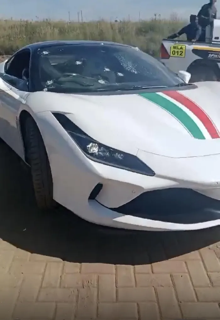 A video taken at the scene showed the victim in a white Ferrari, with the car’s windshield riddled with bullet holes.
