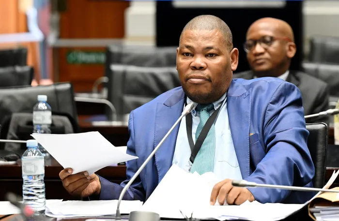 Former National Prosecuting Authority prosecutor Advocate Michael Mashuga testifying before the Ad Hoc Committee on Wednesday.
