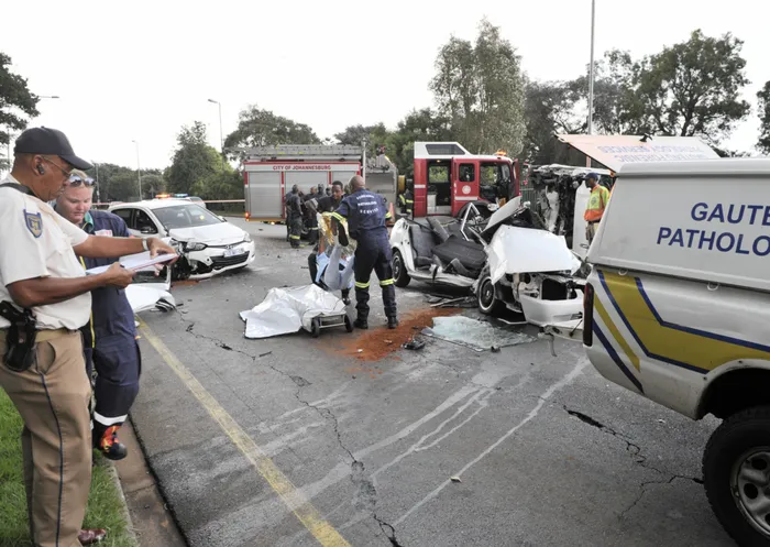 An accident between two cars and a taxi claimed a life of the driver of a white Toyota Tazz in Melville on January 10, 2014. Picture: Dumisani Dube An accident between two cars and a taxi claimed a life of the driver of a white Toyota Tazz in Melville on January 10, 2014. Picture: Dumisani Dube