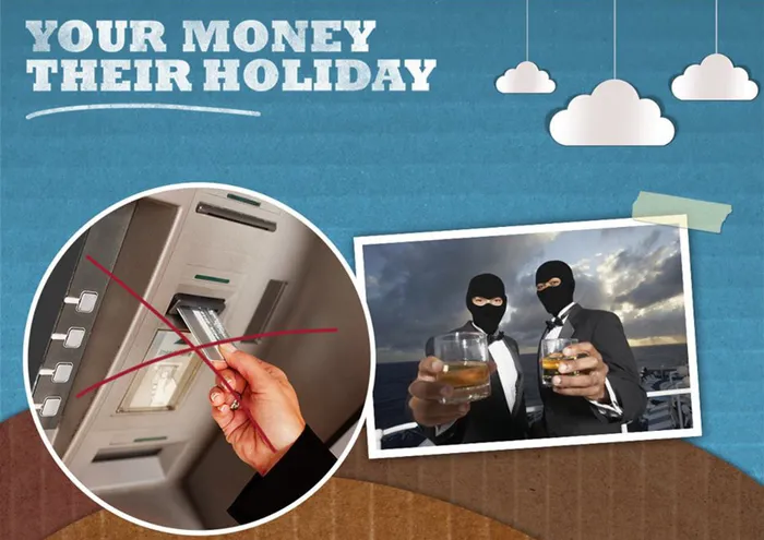 ”Your money, their holiday.” The criminals’ holiday, that is, with the hard-earned money they stole from you.