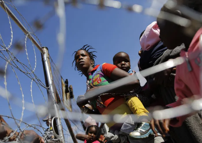 Mothers and children wait in line to be given food at a Red Cross refugee camp set up for foreign residents due to recent xenophobic attacks in the Primrose area of Johannesburg, on April 20, 2015. Photo: Kim Ludbrook Mothers and children wait in line to be given food at a Red Cross refugee camp set up for foreign residents due to recent xenophobic attacks in the Primrose area of Johannesburg, on April 20, 2015. Photo: Kim Ludbrook