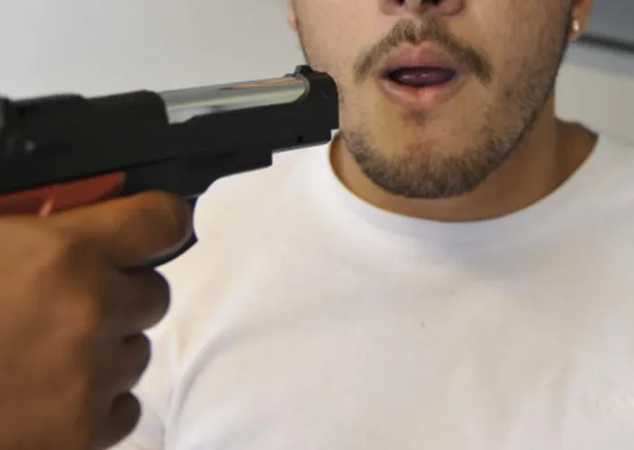 Gregory Willemse of Gansbaai managed to spit out the bullet that nearly killed him. (Re-enactment) Gregory Willemse of Gansbaai managed to spit out the bullet that nearly killed him. (Re-enactment)