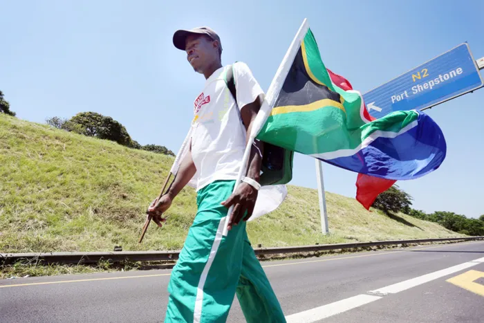 Jan Mabuyakhulu, 44, of Mtubatuba, set off from Richards Bay on November 21 and hopes to finish his walk in Margate on Friday.