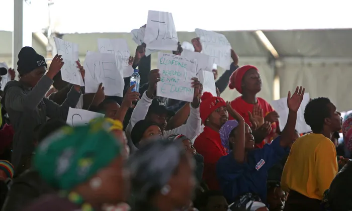Sasco from Lovedale TVET College sang while Ramaphosa was on stage at Sisa Dukashe Stadium delivering the main address of the campaign. Picture: Bhekizizwe Radebe Sasco from Lovedale TVET College sang while Ramaphosa was on stage at Sisa Dukashe Stadium delivering the main address of the campaign. Picture: Bhekizizwe Radebe