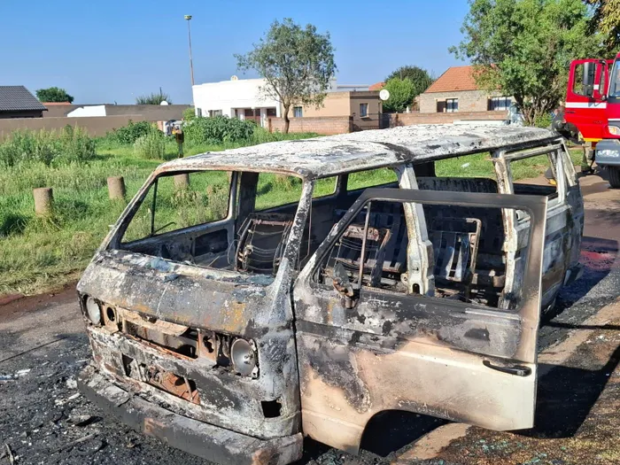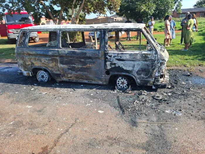The scholar transport kombi lies burnt out in Vosloorus after catching fire on Thursday morning.