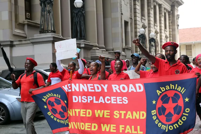 Abahlali BaseMjondolo members outside the Durban High Court earlier this year. The movement will hold a lecture on Tuesday to commemorate its fallen heroes, it said on Monday evening. File photo: Motshwari Mofokeng/African News Agency(ANA) Abahlali BaseMjondolo members outside the Durban High Court earlier this year. The movement will hold a lecture on Tuesday to commemorate its fallen heroes, it said on Monday evening. File photo: Motshwari Mofokeng/African News Agency(ANA)