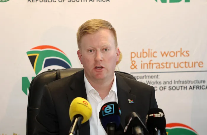 eThekwini Municipality Mayor Cyril Xaba, Public Works and Infrastructure Minister Dean Macpherson and KwaZulu-Natal Public Works and Infrastructure MEC Martin Meyer during the media briefing regarding the preliminary findings of the investigation conducted by the Council of the Built Environment (CBE) into the fatal collapse of a four-storey building in Redcliffe, Verulam.