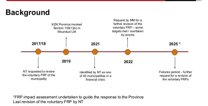 The Msunduzi Municipality Financial Recovery Plan (FRP) that was presented to the municipality in November 2025 by the National Treasury.