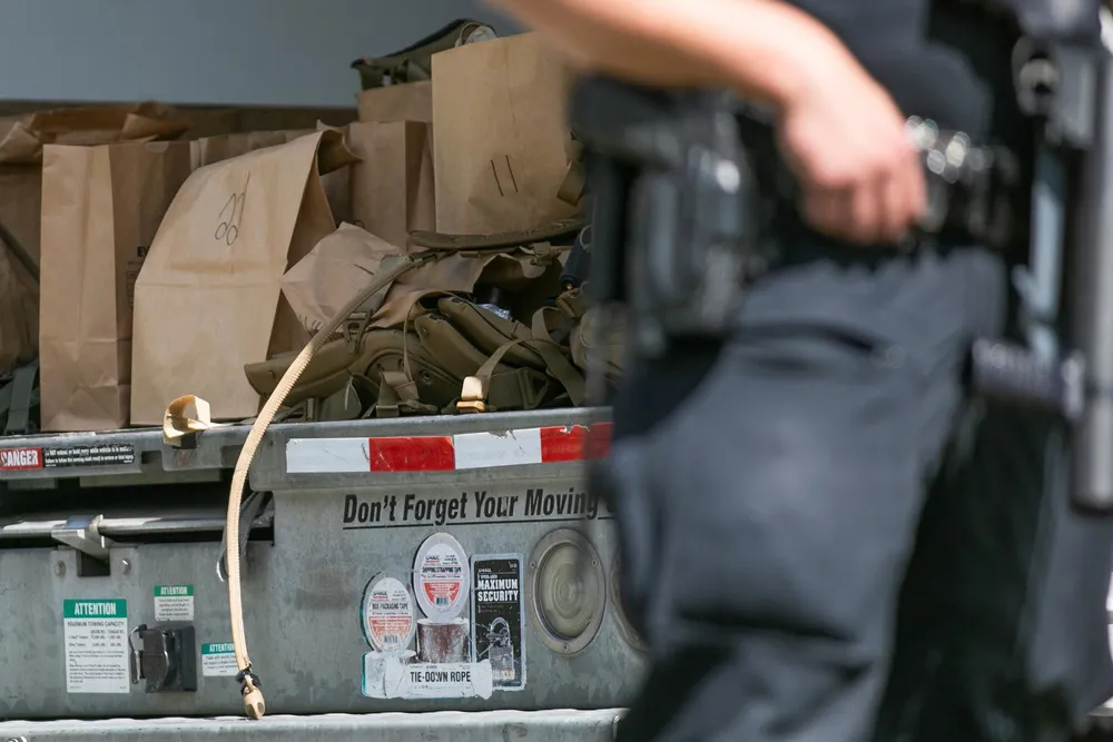 Coeur d'Alene Police Chief Lee White said authorities received a tip about a "little army" loading into a U-Haul truck at a hotel Saturday afternoon. Police from the city, county and state pulled over the truck about 10 minutes later, White said.