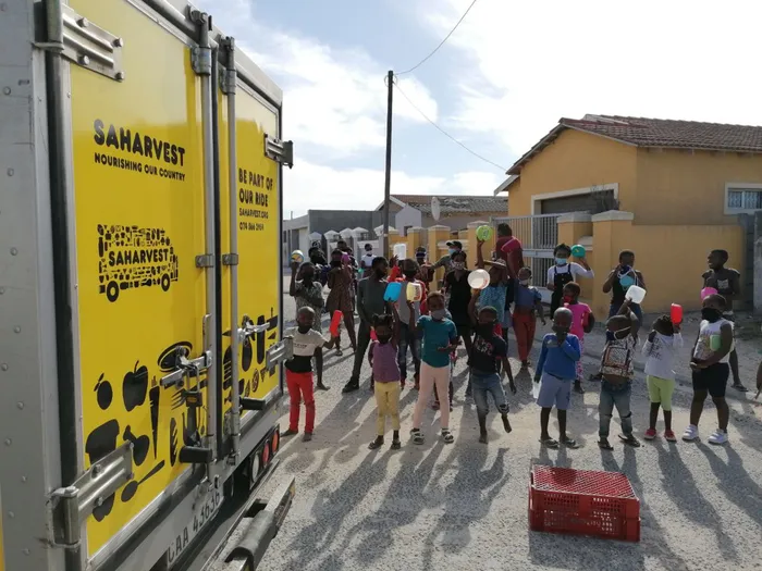 A delivery of food by SA Harvest to children supported by the Dental Wellness Foundation in Cape Town. Picture: Supplied