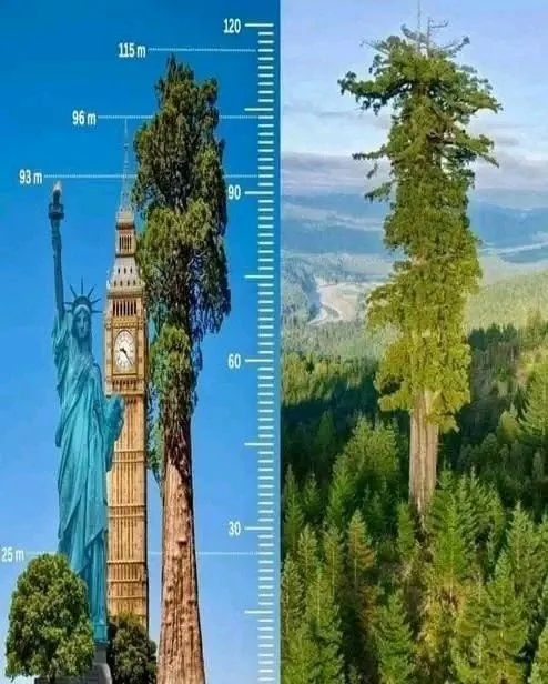 The world's tallest tree, Hyperion, towers over even famous landmarks like the Statue of Liberty and Big Ben. Measuring an impressive 115.55 m (379.1 ft), this giant sequoia in California's Redwood National Park, is as tall as a 35-story building. Hyperion is estimated to be between 700 and 800 years old and contains 530 m³ (18 600 cu ft) of wood.