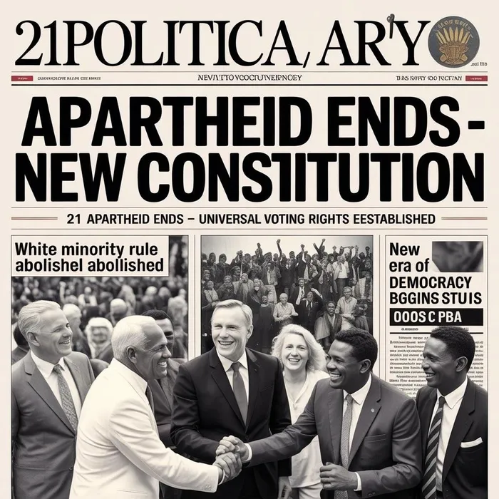 1993 21 political parties approve a new constitution, expanding voting rights and ending white minority rule and Apartheid.