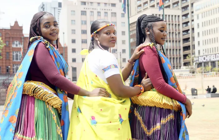 Mercy Chauke, Shylet Chauke and Antonia Nkuna proudly show off their Tsonga traditional attire at Church Square. South Africans commemorate the annual Heritage Day - a public holiday - tomorrow. Jacques Naude African News Agency (ANA)