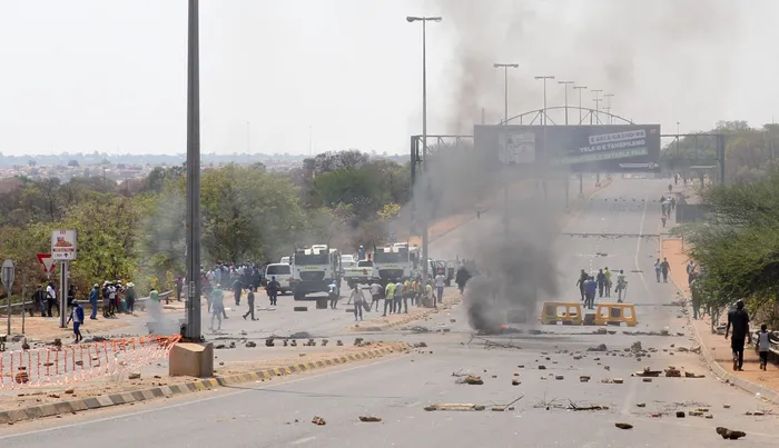 They barricaded the busy Molefe Makinta road with rocks and burning tyres.