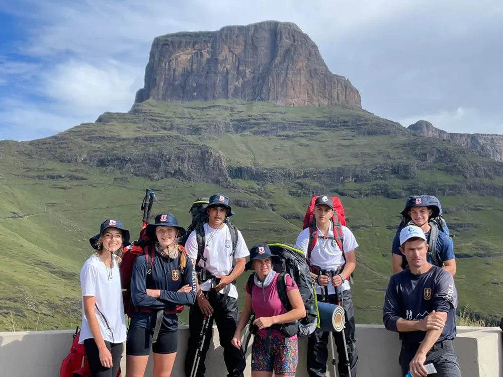 Two female students (Karijn Kooy and Georgina Thompson), three male students (Alexander Giokos, Konstantino Giokos, and Daniel Jonck), our headmaster (Kean Broom), and three other staff members (Derek Brown, Channelle Oosthuizen, and Shaun Robertson) completed the Traverse. As far as we know, they were the first two schoolgirls to complete the 250km traverse of the Drakensberg as a part of a school team.
