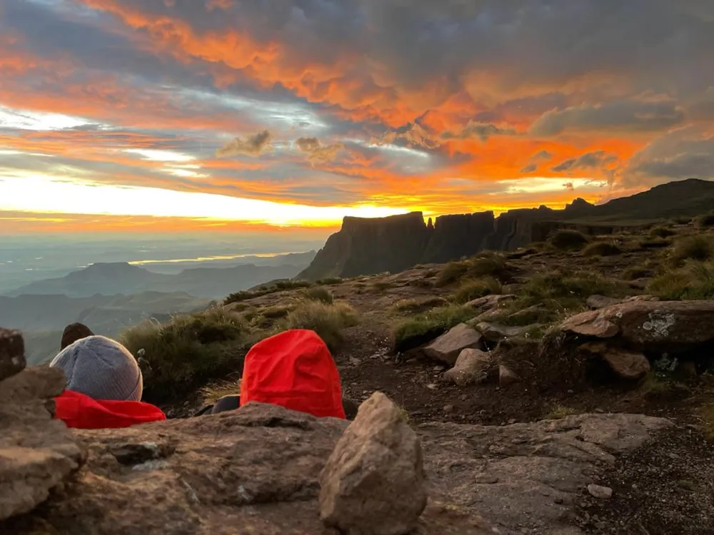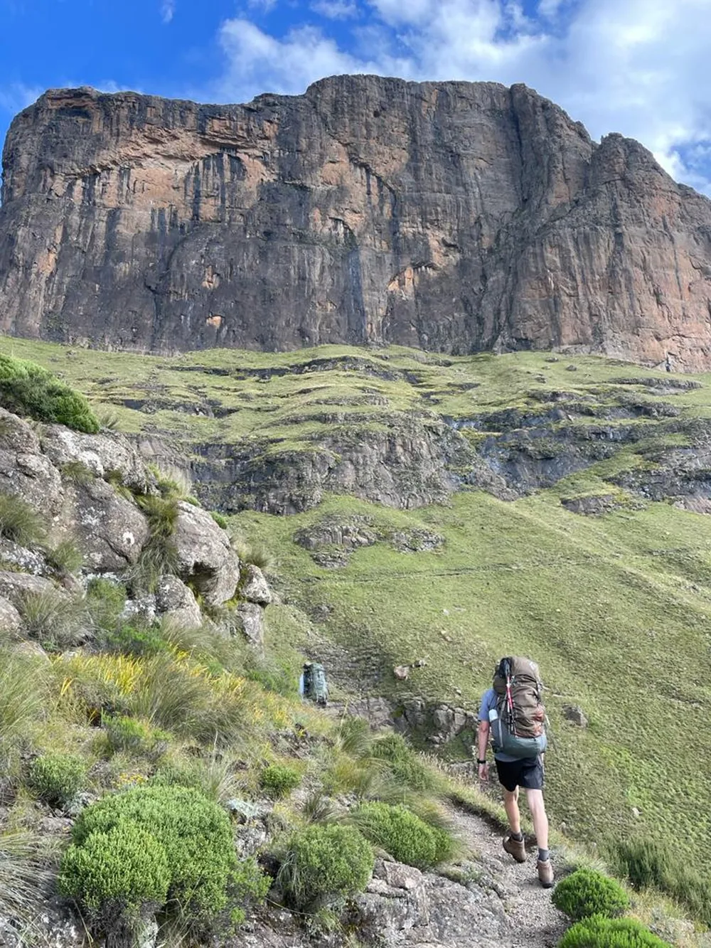 Unsurprisingly, we didn’t spend long on this summit and headed for cover from the wind soon afterwards. A similar storm hit us during the night and the following day we walked to the Sani Pub on the frozen, hail-littered ground. Other than that, we had incredible views of the escarpment, the KwaZulu-Natal Midlands, and the interior of Lesotho, a notable highlight for Georgina.
