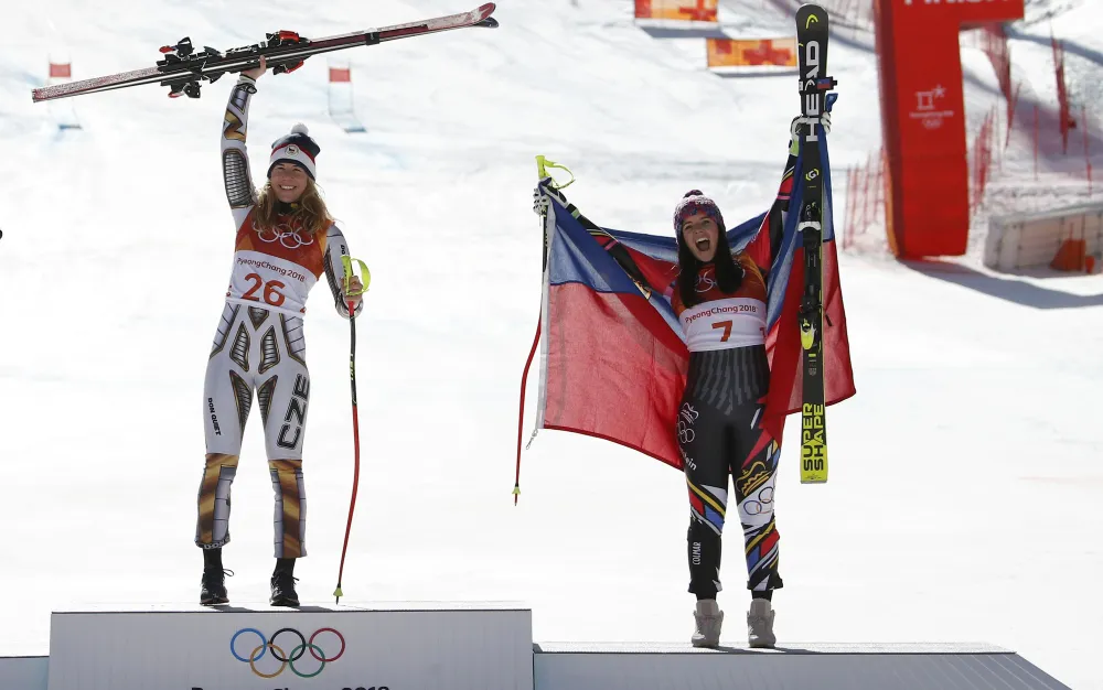 When Ledecka started her run, Austrian Anna Veith was at the bottom of the slope already taking phone calls and receiving the congratulations of her rivals for becoming the first woman to win back-to-back titles in the Olympic super-G.