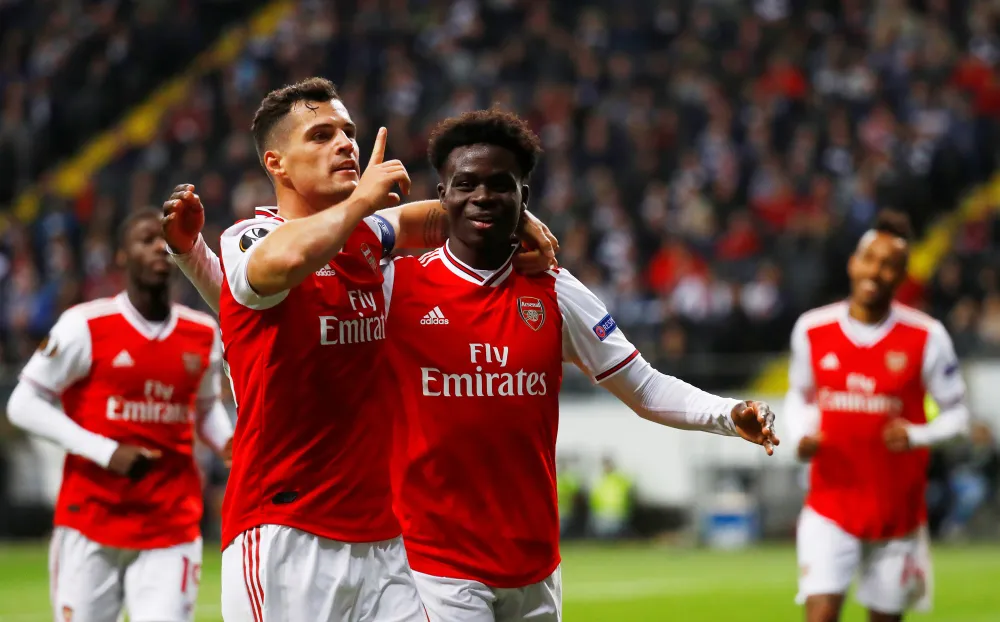 STOCKHOLM – Teenage winger Bukayo Saka scored his first goal for Arsenal as they beat 10-man Eintracht Frankfurt 3-0 in the first round of Europa League group matches on Thursday.