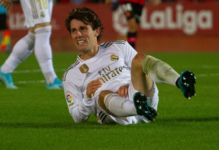 Real Madrid's Alvaro Odriozola reacts during the La Liga match against Mallorca at the Iberostar Estadi in Palma de Mallorca, Spain on Saturday. Photo: AP Photo/Francisco Ubilla Real Madrid's Alvaro Odriozola reacts during the La Liga match against Mallorca at the Iberostar Estadi in Palma de Mallorca, Spain on Saturday. Photo: AP Photo/Francisco Ubilla