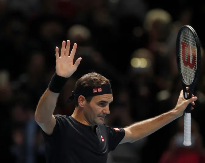 Roger Federer celebrates after defeating Italy's Matteo Berrettini in their ATP World Tour Finals singles tennis match at the O2 Arena in London on Tuesday. Photo: AP Photo/Alastair Grant Roger Federer celebrates after defeating Italy's Matteo Berrettini in their ATP World Tour Finals singles tennis match at the O2 Arena in London on Tuesday. Photo: AP Photo/Alastair Grant
