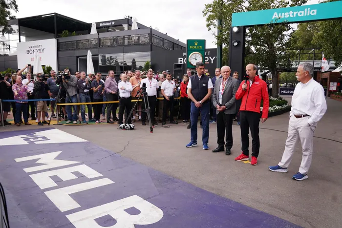 From left to right, Michael Masi of the FIA, Australian Grand Prix Corporation Chairman Paul Little, Australian Grand Prix Corporation CEO Andrew Westacott and executive chairman of the Formula One Group Chase Carey, speak to the media about the cancellation of the Formula One Australian Grand Prix at the the Albert Park Circuit in Melbourne. The first F1 Grand Prix of the season was canceled two hours before the first official practice was set to start Friday after organizers relented to pressure to call it off amid the spreading coronavirus. Photo: Michael Dodge/AAP Image via AP From left to right, Michael Masi of the FIA, Australian Grand Prix Corporation Chairman Paul Little, Australian Grand Prix Corporation CEO Andrew Westacott and executive chairman of the Formula One Group Chase Carey, speak to the media about the cancellation of the Formula One Australian Grand Prix at the the Albert Park Circuit in Melbourne. The first F1 Grand Prix of the season was canceled two hours before the first official practice was set to start Friday after organizers relented to pressure to call it off amid the spreading coronavirus. Photo: Michael Dodge/AAP Image via AP