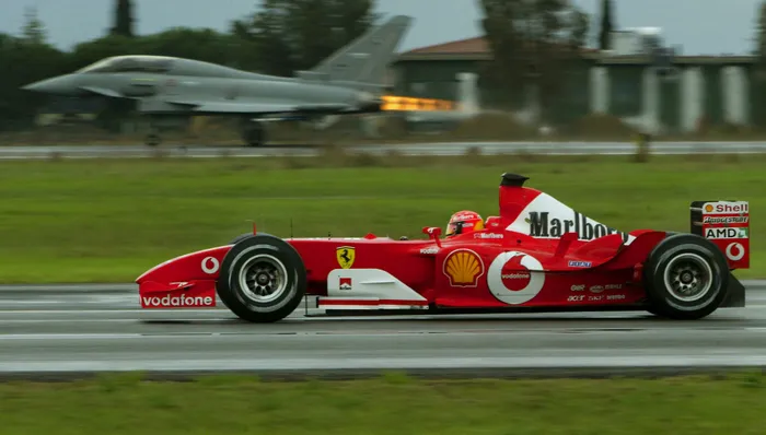 Formula One World Champion Michael Schumacher drives his Ferrari F-2003 GA during a challenge with a Eurofighter jet in Grosseto in Italy FILE - Formula One World Champion Michael Schumacher drives his Ferrari F-2003 GA during a challenge with a Eurofighter jet in Grosseto in Italy. Photo: Reuters