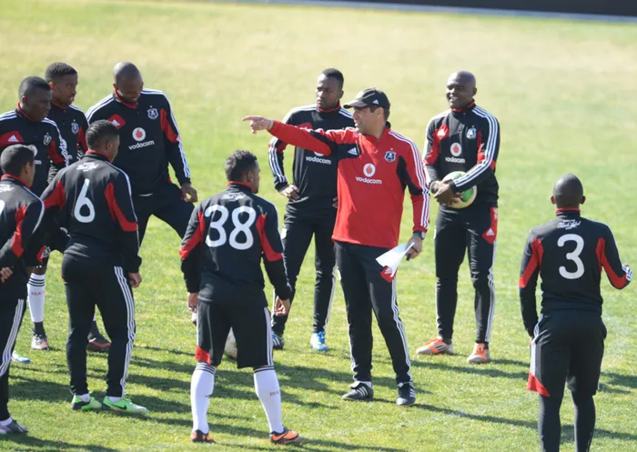 Roger De Sa speaks to his players during the Orlando Pirates at Rand Stadium File. In the game of football, where comparisons are always inevitable, Jose Riveiro’s Orlando Pirates have an eight-goal deficit on their predecessors from a decade ago, as their next Caf Champions League assignment nears. Seen here: Roger De Sa speaks to his players during the Orlando Pirates at Rand Stadium on July 25, 2013 in Johanesburg, South Africa. Picture: Lefty Shivambu/Gallo