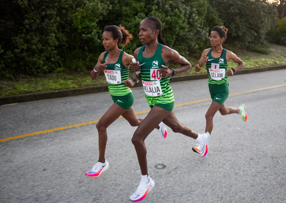 Nare seemed content to hang on Johannes’ shoulder, the Ethiopian appearing confident and seemingly ready to pounce on the older athlete. But it was Johannes, using her long strides, who broke free at about 8km and once she opened the gap Nare could only but hold on to the second spot.