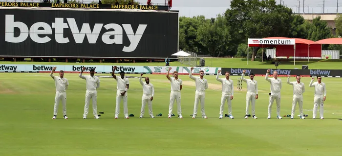 As the national anthem ended, the Proteas men’s team, still standing in a line, raised their right fists. First one, then two more, then another and finally Temba Bavuma. They kept their fists raised for a few seconds, then dropped them, turned around and got into a huddle.