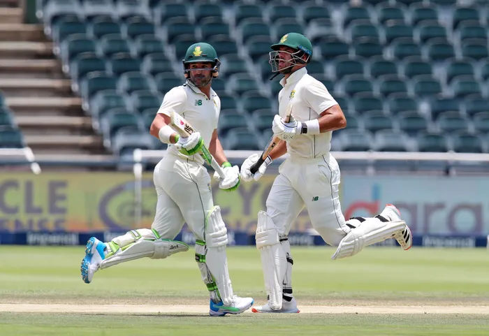 FILE - Aiden Markram with Dean Elgar of South Africa during the 2020 Betway Test Series match between against Sri Lanka. Photo: Muzi Ntombela/BackpagePix
